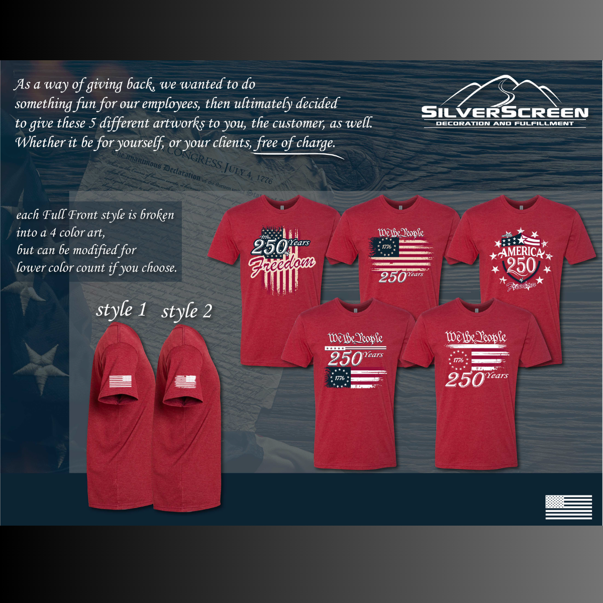 Free America 250 Artwork for Custom Apparel | Silverscreen Decoration